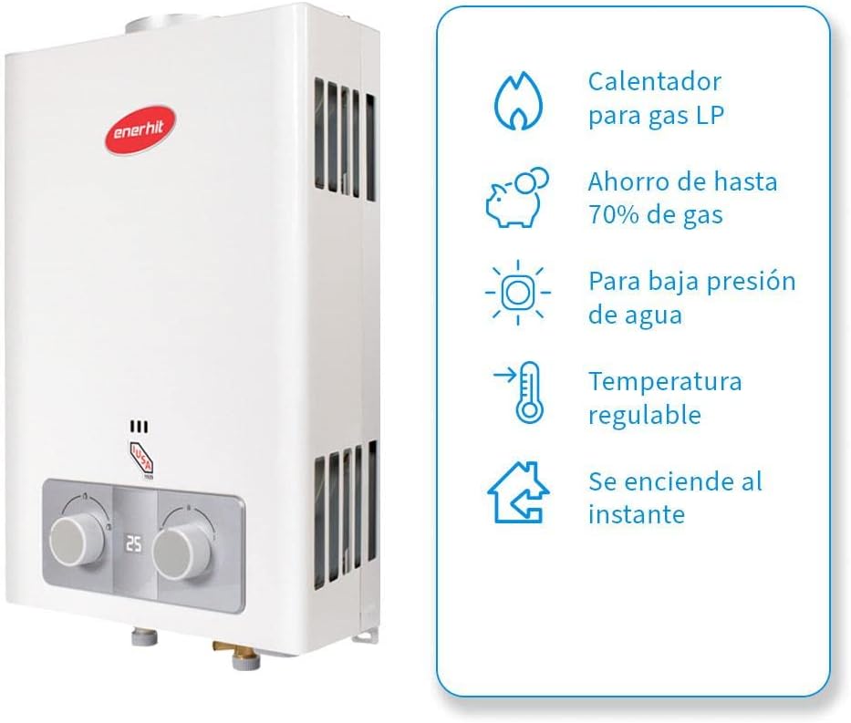- Gracias a su moderno diseño, este boiler instantáneo Enerhit lo puedes combinar con cualquier estilo de decoración en tu hogar. Su tecnología te permite encenderlo de manera electrónica y controlar la temperatura en su novedosa pantalla LCD